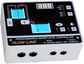 Our Programmable LED model provides all the features provided by our Indicator models together with digital voltage display & user programmable settings for dry run delay, start level for the motors etc.. Functions: 1) Switches on the motor when the water level in the over head tank reaches minimum level. 2) Switches off the motor when the water level in the over head tank reaches maximum level. 3) Functions 1-2 are co-ordinated with the levels of water in the sump, ie. the motor is not started when the water level in the sump as at minimum, it is started as the water level approaches maximum in the sump. 4) We also have a special dry run cut off Program which will be very useful for the bore well/wells with less yield connected to submersible pumps. This unit will have a dry run cut off time delay in the initial as 3 min or 5 min depending upon the time taken for the water to reach the OH tank, but once the water starts flowing in case the water flow stops before filling the tank or sump it will cut off pump with in 30sec or 45sec from the moment of flow stoppage. Again it will restart on its own according to the programmed 1hr, 2hr or 3hr & try to top up the tank. It will automatically keep trying until the OH tank or collection source is 100% full. This will help you to collect maximum water from the yield available without any manual intervention. It will also help you to protect your pumps from burnouts due to dry running. The pump on time can also be restricted for only 10mins, 20mins, 30mins for every operation irrespective of the collection tank is full it will stop the restart after certain time delay.
